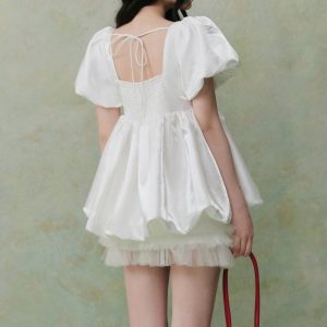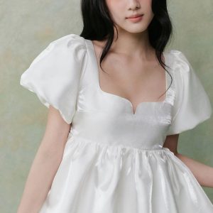 Áo Babydoll Tay Bồng White Tafta Puff Top
